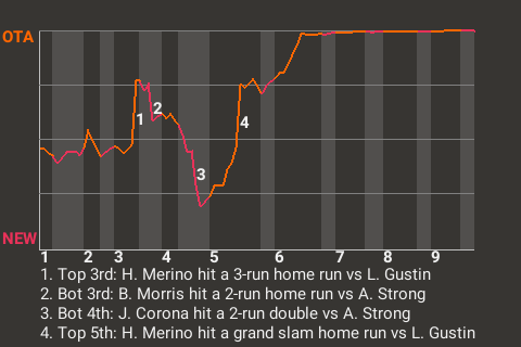 2 (13, 3rd Inning off L. Gustin, 2 on, 2 outs; 5th Inning off L. Gustin, 3 on, 0 outs)