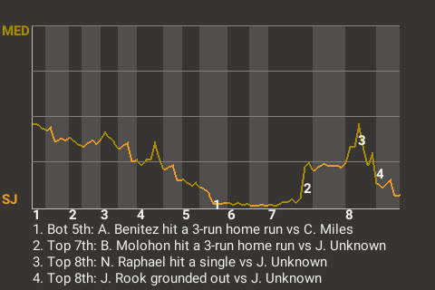 2 (8, 1st Inning off C. Miles, 0 on, 1 out; 5th Inning off C. Miles, 2 on, 0 outs)