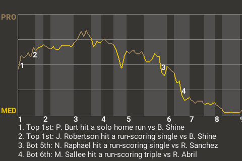 2 (3, 3rd Inning off R. Sanchez, 0 on, 0 outs; 6th Inning off R. Abril, 1 on, 1 out)