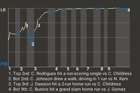 2 (5, 1st Inning off C. Childress, 0 on, 0 outs; 9th Inning off C. Rodriguez, 2 on, 2 outs)