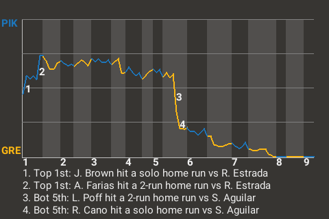 2 (20, 3rd Inning off S. Aguilar, 0 on, 2 outs; 5th Inning off S. Aguilar, 0 on, 2 outs)