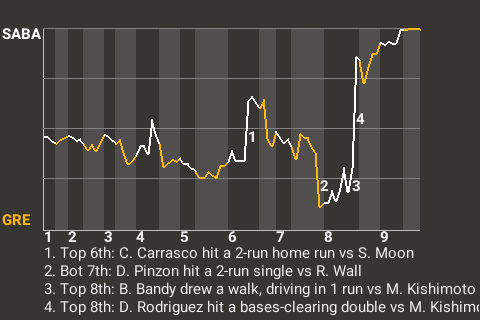 a - P. Gentry pinch hit for C. Carrasco in the 8th