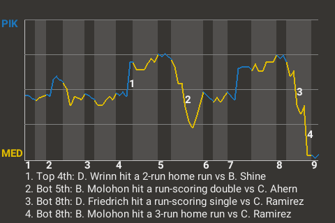 (9, 4th Inning off B. Shine, 1 on, 2 outs)