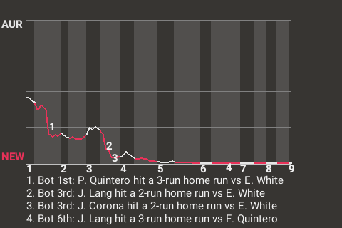 2 (20, 3rd Inning off E. White, 1 on, 0 outs; 6th Inning off F. Quintero, 2 on, 2 outs)