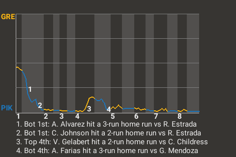 2 (33, 5th Inning off C. Childress, 0 on, 0 outs; 8th Inning off J. Unknown, 0 on, 1 out)