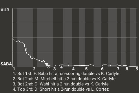 Frank Babb hit a run-scoring double off Kieran Carlyle in the bottom of the first, which put the Black Aces in front, 1-0. In addition to the double, Babb had 1 single and 1 walk, while going 2 for 4.