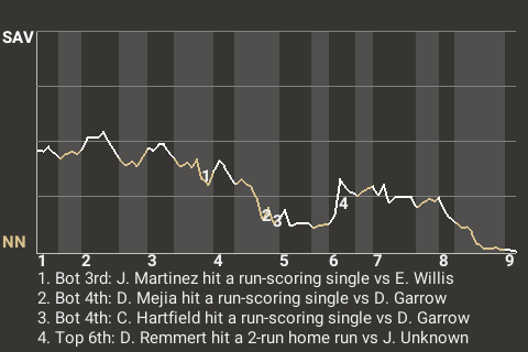 b - A. Vasquez substituted for C. Hartfield in the 8th
