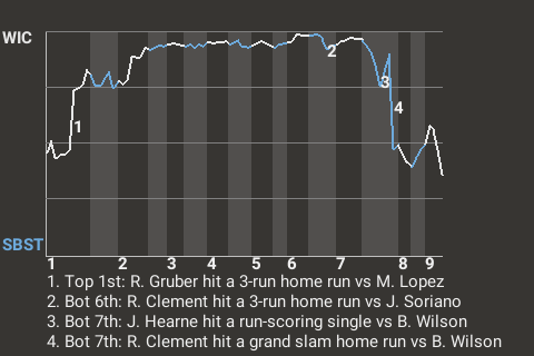 3 (20, 4th Inning off J. Soriano, 0 on, 2 outs; 6th Inning off J. Soriano, 2 on, 1 out; 7th Inning off B. Wilson, 3 on, 2 outs)