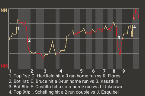 2 (17, 1st Inning off R. Flores, 0 on, 0 outs; 7th Inning off J. Bravo, 0 on, 1 out)