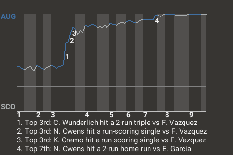 In the top of the third, Wunderlich had a 2-run triple for Augusta. It was his 10th triple of the season and put the Capitols on top, 2-0.