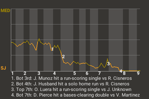 2 (3, 4th Inning off R. Cisneros, 0 on, 0 outs; 7th Inning off V. Martinez, 0 on, 1 out)