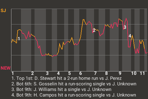 2 (5, 2nd Inning off J. Unknown, 1 on, 0 outs; 11th Inning off J. Unknown, 1 on, 1 out)
