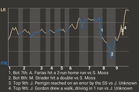 2 (8, 6th Inning off M. Osborne, 1 on, 0 outs; 8th Inning off S. Moss, 1 on, 0 outs)