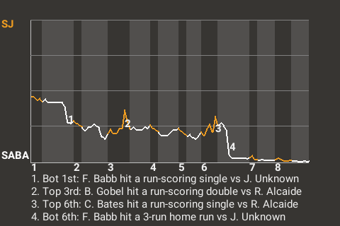 Santa Ana took a 6-2 lead on Babb's 9th home run of the season. The 3-run home run, which he hit off Jim Unknown in the bottom of the sixth, propelled Santa Ana to the win.