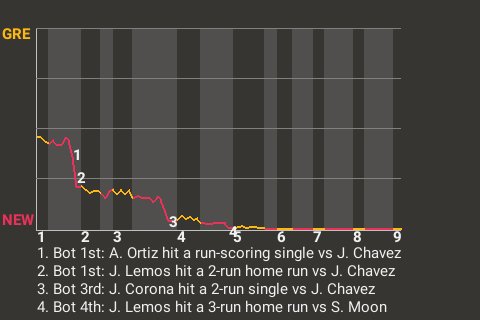 2 (10, 1st Inning off J. Chavez, 1 on, 2 outs; 4th Inning off S. Moon, 2 on, 2 outs)