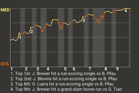 (5, 9th Inning off G. Tian, 3 on, 1 out)