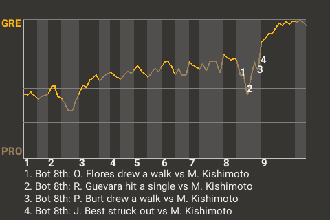 The game was on the line with two out in the bottom of the eighth inning, but Masanori Kishimoto didn't flinch. With the bases loaded and Providence trailing 1-0, Kishimoto retired Joe Best to end the threat. "Nothing to it," said Kishimoto, with a wink.