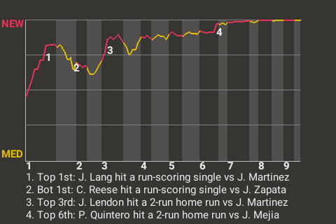 2 (10, 3rd Inning off J. Martinez, 0 on, 0 outs; 4th Inning off J. Martinez, 0 on, 1 out)