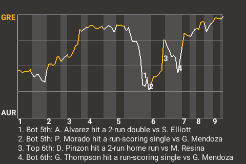 b - G. Thompson substituted for A. Alvarez in the 6th