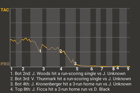 Jeremy Woods was 1 for 2 with a walk for Providence. The 22-year old second baseman had a key at-bat in the bottom of the second. With one out and the bases loaded, he broke a 0-0 tie with a run-scoring single off Jim Unknown. It was his 78th hit of the season.