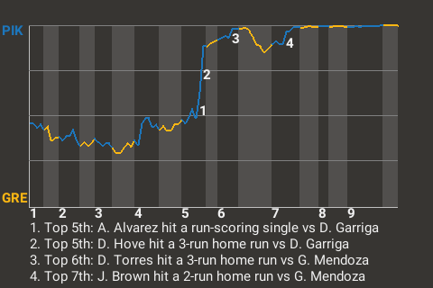 2 (15, 4th Inning off O. Vega, 0 on, 1 out; 5th Inning off D. Garriga, 2 on, 2 outs)
