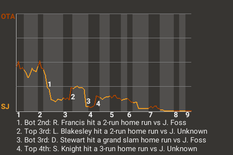 (9, 2nd Inning off J. Foss, 1 on, 0 outs)