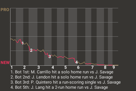 2 (16, 1st Inning off J. Savage, 0 on, 2 outs; 7th Inning off J. Carreon, 0 on, 0 outs)