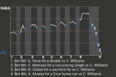 (9, 8th Inning off C. Williams, 1 on, 0 outs)