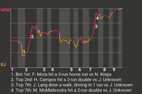 2 (35, 1st Inning off N. Kreps, 2 on, 1 out; 7th Inning off A. Almanza, 0 on, 1 out)