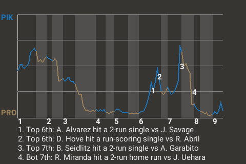 a - A. Alvarez pinch hit for D. Torres in the 6th