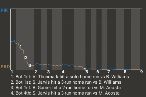 2 (8, 1st Inning off B. Williams, 2 on, 1 out; 4th Inning off M. Acosta, 2 on, 2 outs)