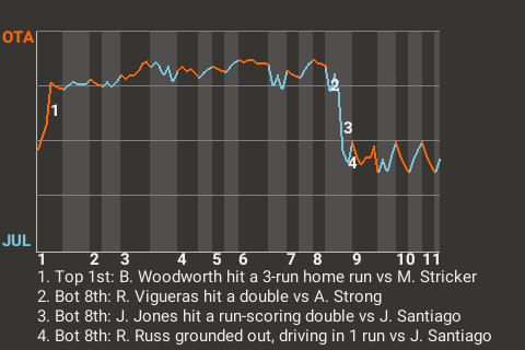 (11, 8th Inning off J. Santiago, 2 on, 1 out)
