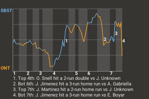 2 (7, 6th Inning off A. Gabriella, 2 on, 0 outs; 7th Inning off E. Boyar, 2 on, 2 outs)