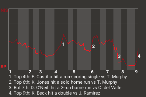 (9, 9th Inning off J. Ramirez, 1 on, 0 outs)