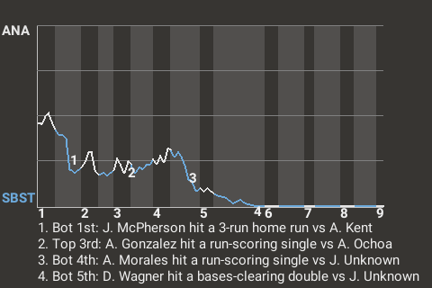2 (23, 3rd Inning off A. Kent, 0 on, 0 outs; 6th Inning off J. Unknown, 1 on, 0 outs)