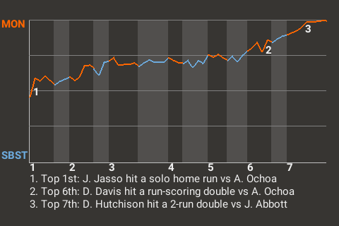 2 (8, 1st Inning off A. Ochoa, 0 on, 1 out; 7th Inning off J. Abbott, 3 on, 0 outs)