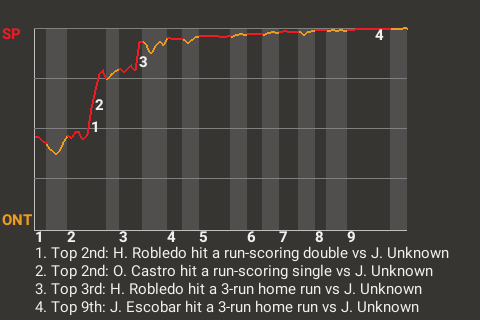 2 (2, 4th Inning off J. Unknown, 0 on, 2 outs; 9th Inning off J. Unknown, 1 on, 0 outs)