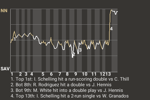 Who knows how it would've ended, had it not been for Ian Schelling? The 21-year old left fielder Schelling stroked a 2-run single in the top of the 13th inning to put Newport News up, 3-1. For the game, he was 2 for 6, including 1 double and 1 single.