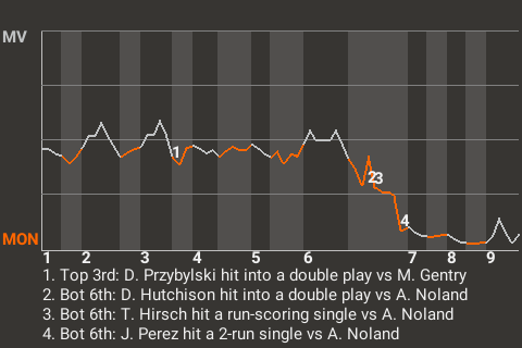 Gentry yielded no runs on 3 hits over 8 innings for the Missions. For the season, Gentry has a record of 9-2 with 82 strikeouts.