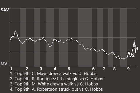 b - M. White pinch hit for R. Rodriguez in the 9th