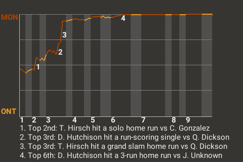 2 (27, 5th Inning off Q. Dickson, 0 on, 0 outs; 6th Inning off J. Unknown, 2 on, 1 out)