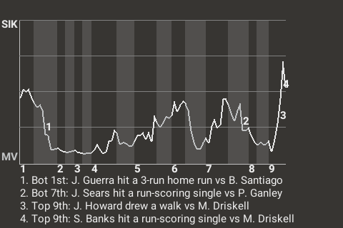 2 (21, 1st Inning off B. Santiago, 2 on, 1 out; 9th Inning off P. Ganley, 0 on, 0 outs)