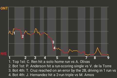 2 (8, 1st Inning off A. Olivas, 0 on, 2 outs; 6th Inning off A. Olivas, 0 on, 0 outs)